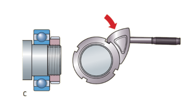 4. Never use a cold chisel to drive the lock nut. Use a C-spanner or impact spanner.